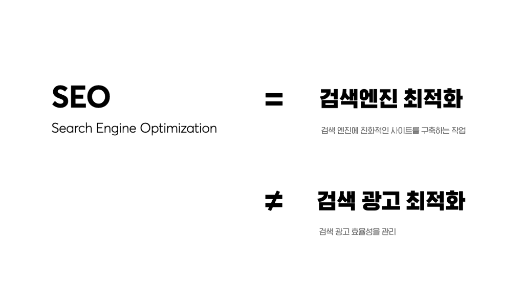 흔히 SEO (검색엔진최적화)가 검색광고전략 효율성을 관리하는 작업으로 오해하는 경우가 많은데, SEO는 검색광고최적화가 아닌 ‘검색엔진최적화‘라는 것을 기억하셔야 합니다.